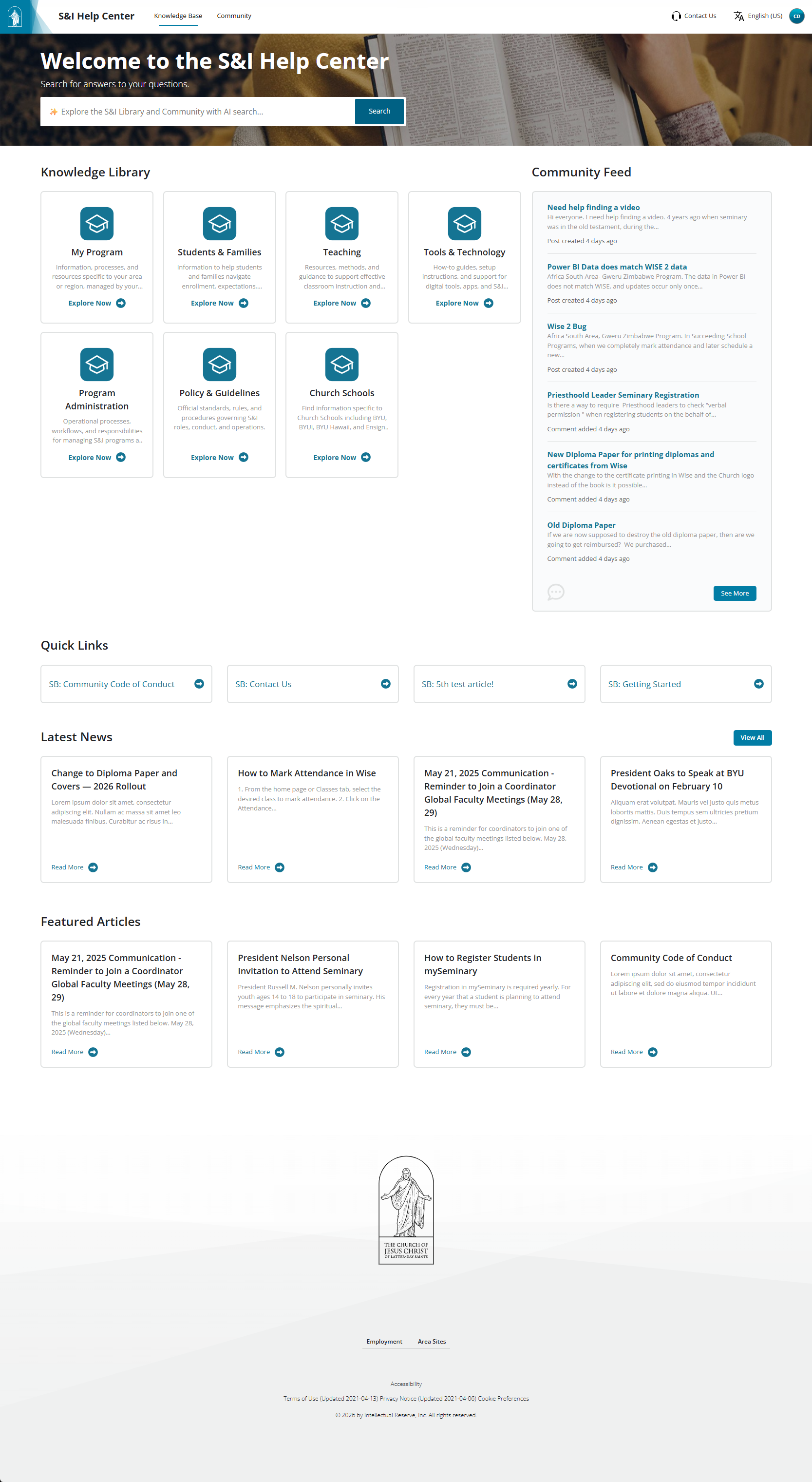 We’re excited to introduce a refreshed main landing page for the Seminary & Institute (S&I) Help Center!